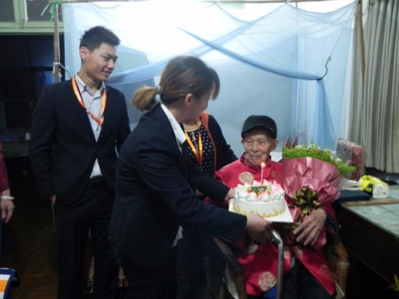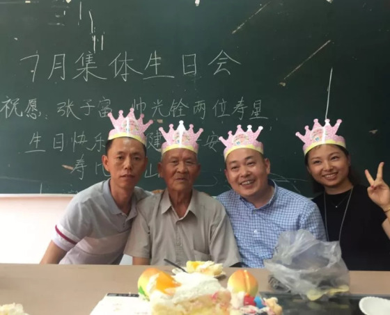 这一天,龙岗老龄居颐养院里特别热闹。卡拉OK音乐欢快的旋律早早地飘扬在院子的天空。对于张子富、帅光铨老人来说,这天是个特殊的日子。因为今天,老龄居的员工为他们举办了一个难忘的生日会。 “张大伯,我们来给您过生日啦,祝您每天开心。”“帅大伯,生日快乐……”这天一大早,龙岗老龄居颐养院里就热闹非凡,老龄居的领导也特意赶去和院里的所有老人共同为七月出生的两位老人过生日。看到领导们忙前忙后,其中一位老人感动得抹起了眼泪说:“这么多人都来给我们过生日,老龄居的人真好……”忙中抽闲,拳拳之心令人感动 龙岗
